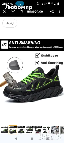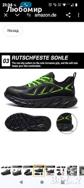 Работни обувки ISOOUS, мъжки предпазни обувки, дамски обувки със стоманена шапка, спортни, дишащи, защитни обувки, нехлъзгащи се.Подметката на работните обувки е изработена от лек и мек гумен материал, поема по-ефективно ударите и осигурява достатъчно омекотяване и опора на свода на стъпалото. Стелката на предпазните обувки е изработена от кевлар, има добра устойчивост на пробиване и гъвкавост, осигурявайки едновременно безопасност и комфорт.Дишащ мрежест дизайн с отвор, за да поддържа краката ви удобни и дишащи, поддържа краката свежи и без мирис през цялото време.Мрежа. Дишащият мрежест материал поддържа краката сухи и осигурява удобна вентилация. Капачката на обувките със стоманена шапка е европейски стандарт стоманена шапка, която издържа на енергия на удара от 200 J и налягане на удара от 15000 N, има функции против разбиване и устойчивост на натиск.