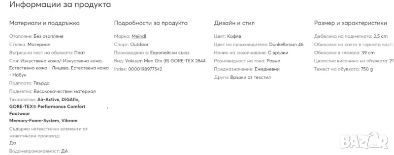 - Набук кожа с Gore-Tex® подплата- Подметка Meindl Multigriff®2 от Vibram®