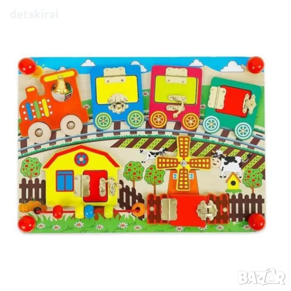 Играчка с ключалки, влак и ферма - заключвайте и отключвайте вратата и прозорците на влака.