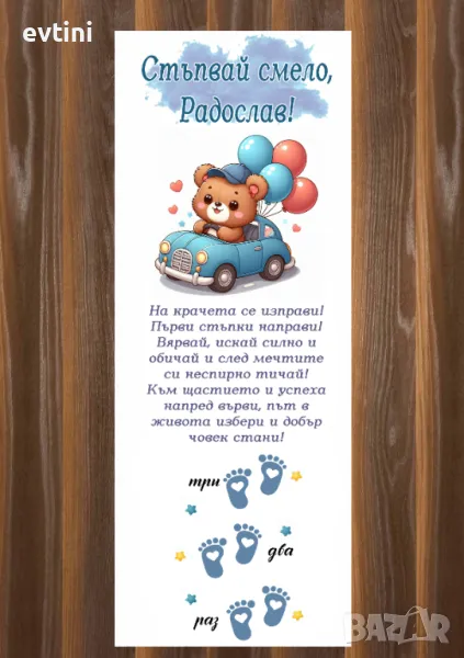 Към всяко платно, може да бъде изработено тематично боди, банер, карти за наричане/пожелания, етикети, тениски