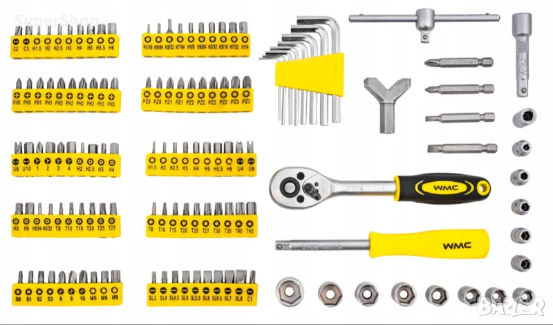 Комплект накрайници с тресчотка WMC 130 части отверка инструменти