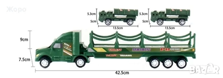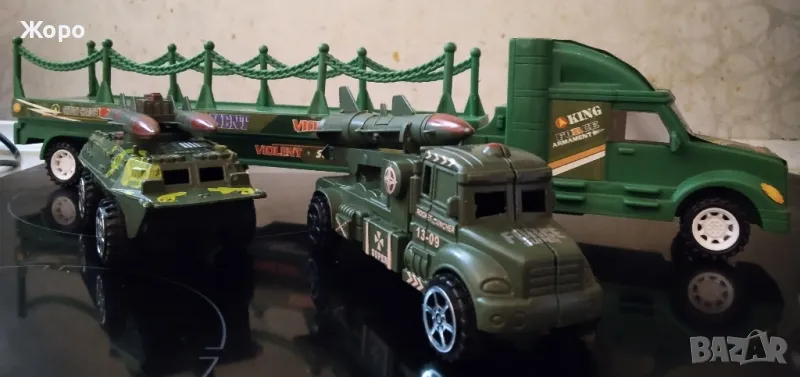 Комплекта съдържа един голям камион автовоз , който превозва два големи военни машини ракетоносачи с истински дизайн