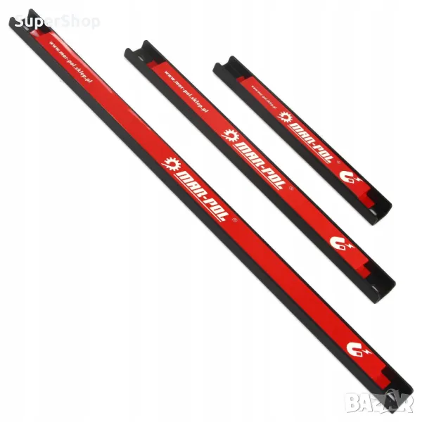 Професионален Комплект от три магнитни ленти MAR-POL, които осигуряват сигурно задържане за инструменти. Вграденият силен магнит осигурява широк спектър от приложения. Лентите са с прахово покритие, което осигурява изключително гладка и издръжлива повърхност, която предпазва от окисляване на метала т.е. корозия, химични и механични повреди.