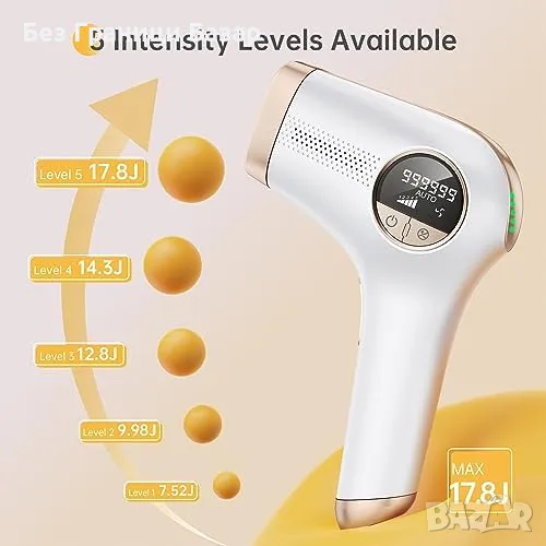 5 нива на енергия до 17J за прецизно и комфортно премахване на косми