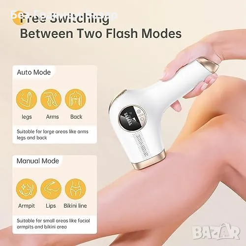 Режими за автоматично и ръчно използване – идеални за различни зони като ръце, крака, подмишници, бикини зона, лице, гръб и гърди