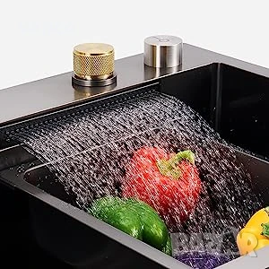 уникален водопад и подходяща дренажна кошница. Единичната голяма купа осигурява достатъчно пространство за накисване и почистване на съдове за готвене, докато наклонената основа към единичния изместен дренаж минимизира натрупването на вода. Изработена е от неръждаема стомана с нано покритие, което я прави устойчива на отчупване, напукване или изгаряне, и осигурява години красота и надеждна работа.