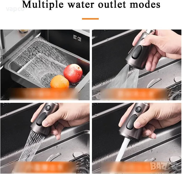 - Смесител за вода с 3 режима и издърпваща се глава