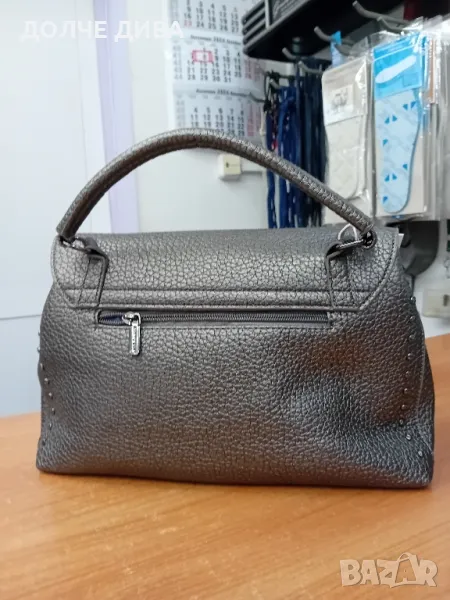 Дамска чанта от качествена еко кожа с три прегради и външен джоб с цип,къса дръжка и дълга дръжка. За повече информация пишете