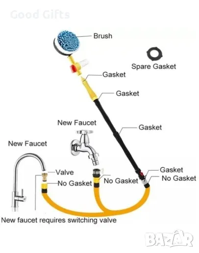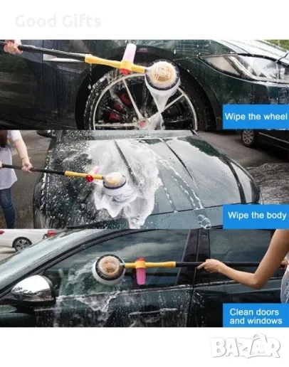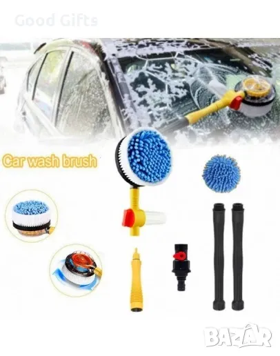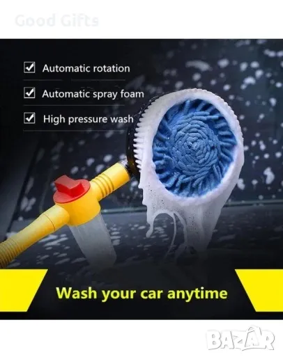Поне така беше досега! Представяме ви автоматично въртяща се четка за миене на кола. Четката изключително лесно се сглобява и само трябва да я свържете към маркуча си. След като пуснете водата тя започва да се върти и по този начин вие миете колата си.