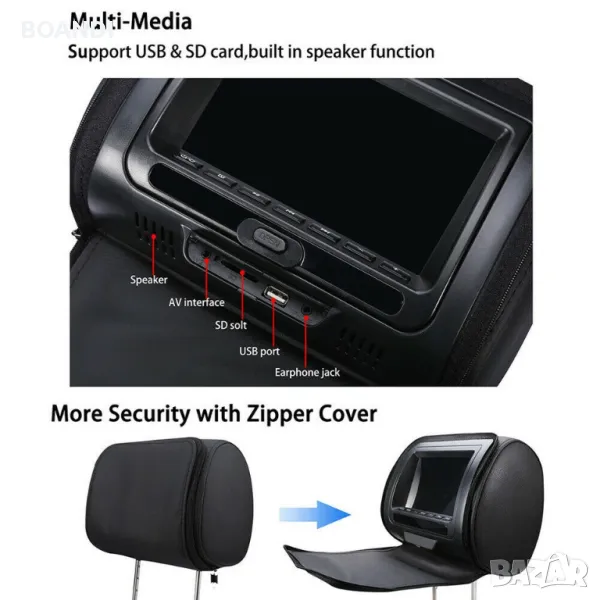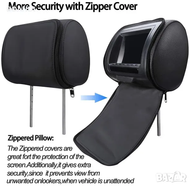 - 2 бр. подглавници възможност за плейване на музика и видео от флашка , диск или медийно устройство в автомобила.