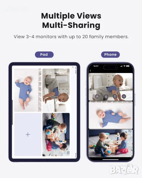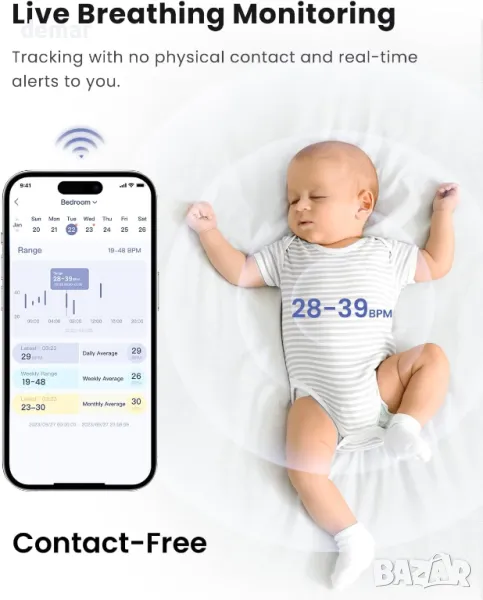 Изпитайте усъвършенствано безконтактно наблюдение на дишането с AI технология, която анализира данните за дишането на вашето бебе, като същевременно осигурява необезпокоявана почивка. Устройството предлага лесна настройка с три опции за монтаж и двулентова WiFi съвместимост за стабилна връзка. Насладете се на 2K Super HD нощно виждане, вградена нощна лампа и 12 успокояващи приспивни песни за успокояваща среда за сън. Той също така включва разпознаване на плач, проследяване на движение през безопасна зона и предоставя навременни сигнали, когато е необходимо. Без скрити разходи и 32 GB локално хранилище можете да получите достъп до разширени функции за откриване без абонамент и да съхранявате до един месец видеозаписи.