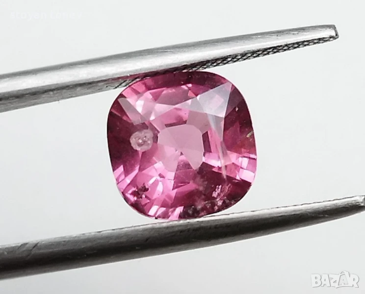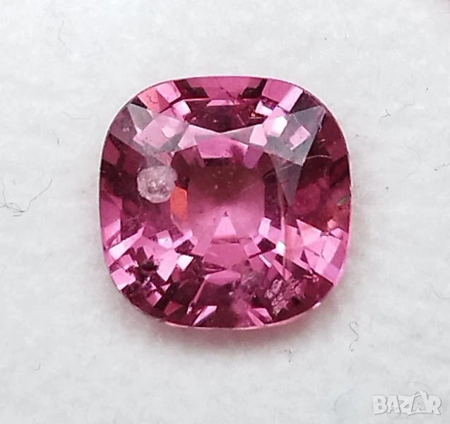 Естествен шпинел с тегло 1.71кт. и произход Мианмар. Чистота SI с минимални включения видими с невъоръжено око. Цвета е розов. Симетрична къшън форма с размери: 6.9 X 6.9 X 4.4 mm.