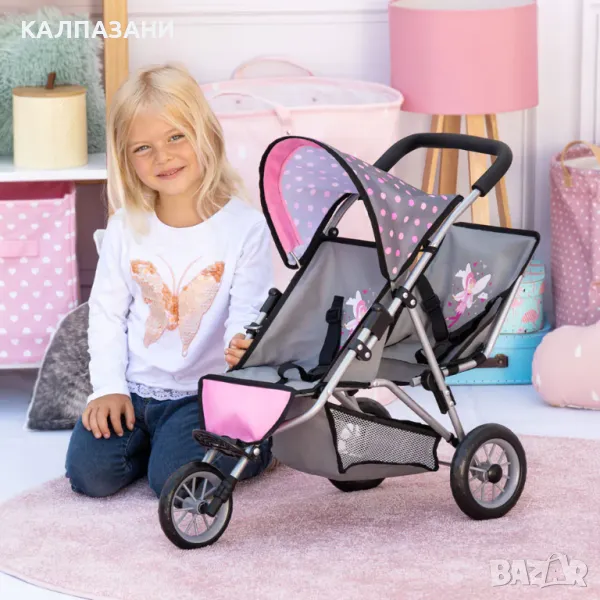 красива количка за кукли близнаци със стабилна конструкция и свеж дизайн;