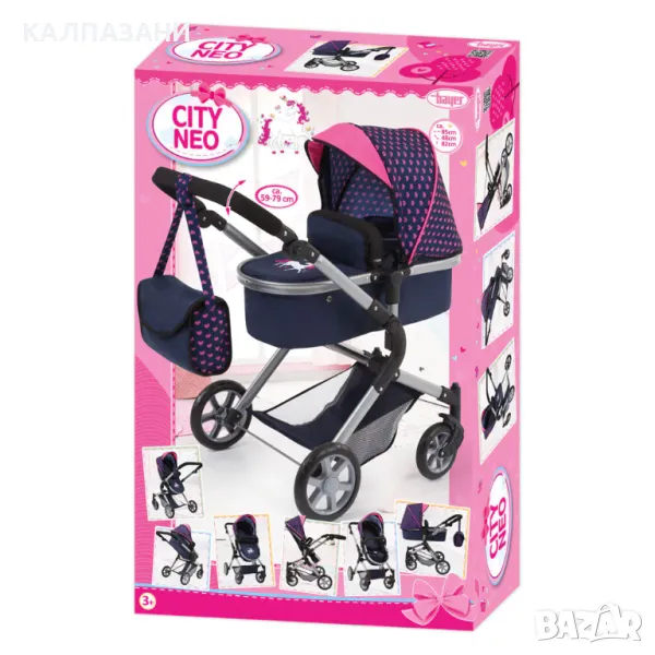 BAYER Количка за кукли CITY NEO 3 в 1 с чанта Тъмносиня 18154AA → Обява 47509763