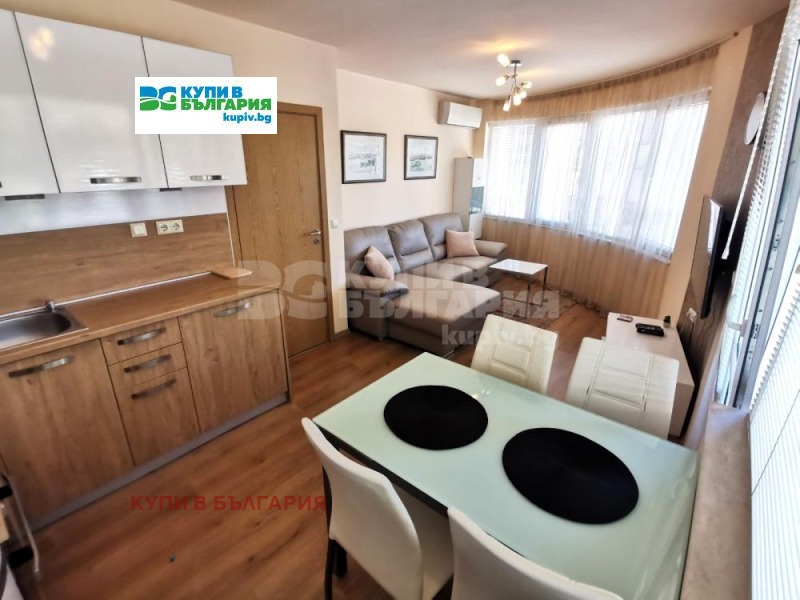 Предимства: Жилището се предлага напълно обзаведено и оборудвано с всички необходими мебели и електроуреди. Дневната разполага с висок клас климатик, готварска печка, абсорбатор, съдомиялна, пералня, хладилник с камера, висок клас smart плазмен 3D телевизор, разтегателен диван с холна масичка, разтегателна трапезна маса с четири стола. Изложението е западно, което гарантира много слънчеви лъчи, топлина и много уют. Намира се на трети среден етаж. Абсолютно изрядно състояние. Свободно паркиране, около сградата.