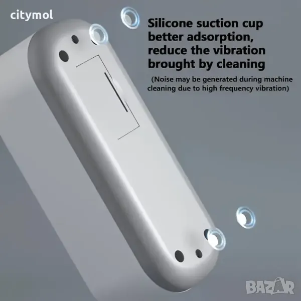 С компактни размери от 18.6x6.8x6.8cm, ултразвуковата чистачка е изработена от висококачествен PP материал в бяло и сиво, придавайки модерен и елегантен вид. Устройството е лесно за управление с удобен бутон за включване и изключване.