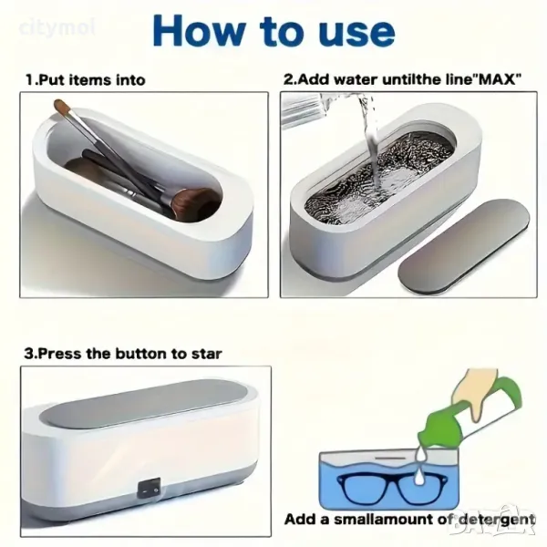 - Ултразвуковата чистачка е перфектното решение за почистване и стерилизация на вашите лични вещи като обеци, часовници, очила и други. С максимален капацитет от 300ml, тази преносима чистачка използва ултразвукова технология за 360-градусово почистване, гарантирайки, че вашите предмети ще изглеждат като нови.