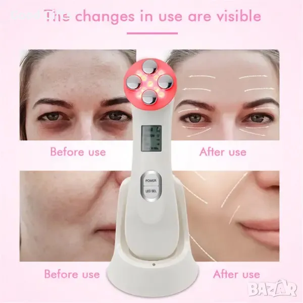 4. Подходящ за: лицето/областта на носа/челото/брадичката/очите и помага в грижата срещу бръчки. LED светлината се използва за осигуряване на безболезнена грижа за кожата, като я подхранва и стимулира производството на колаген, лекува леки до умерени форми на акне.