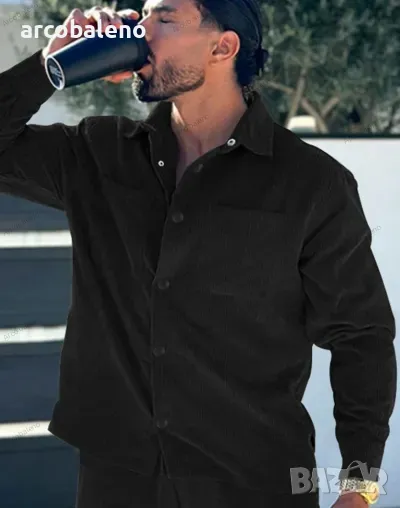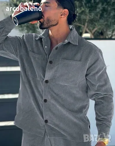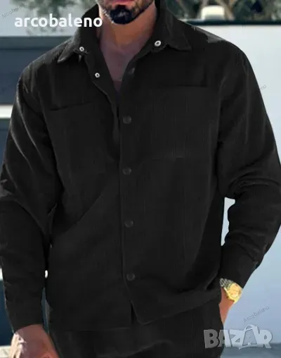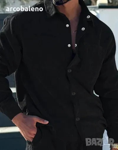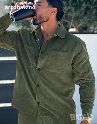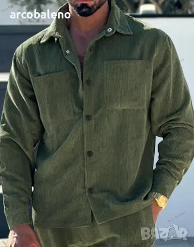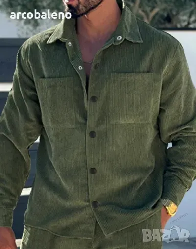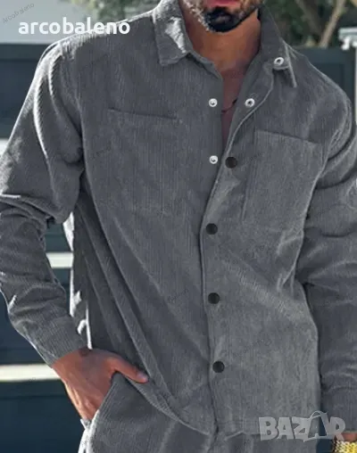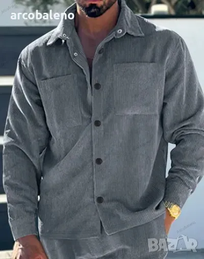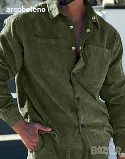 Ежедневна мъжка риза с много джобове от рипсено кадифе с копчета, 3цвята