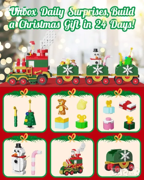 D-FantiX Advent Calendar 2024 Коледен влак, градивни блокчета с LED светлина