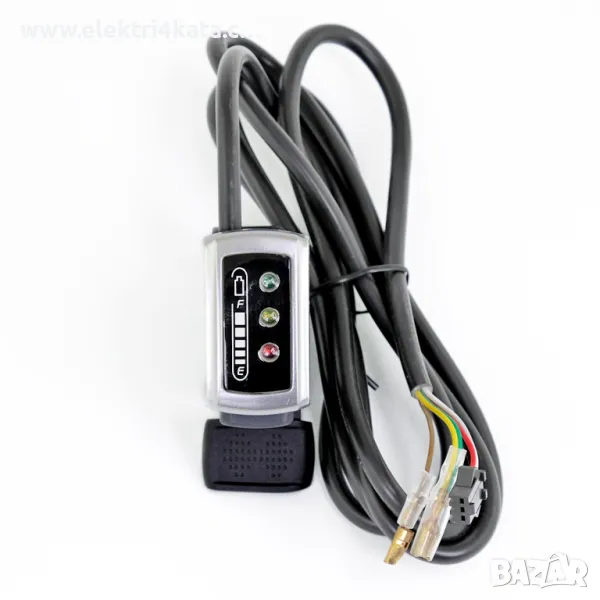 Акселератор (палец) за газта 48V с индикатор показва състоянието на батерията и е оборудван с бутон в долната част, който е подходящ за различни режими: ниска и висока предавка, задна скорост, бутон за фарове, круиз контрол, както и за включване/изключване на електрическото превозно средство.