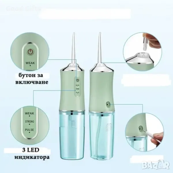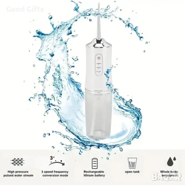 Представяме ви този компактен, но супер мощен зъбен душ, благодарение на който ще успявате да почистите ефективно междузъбното пространство и да предпазите венците и зъбите си от образуване на кариеси, пародонтоза и други зъбни проблеми.
