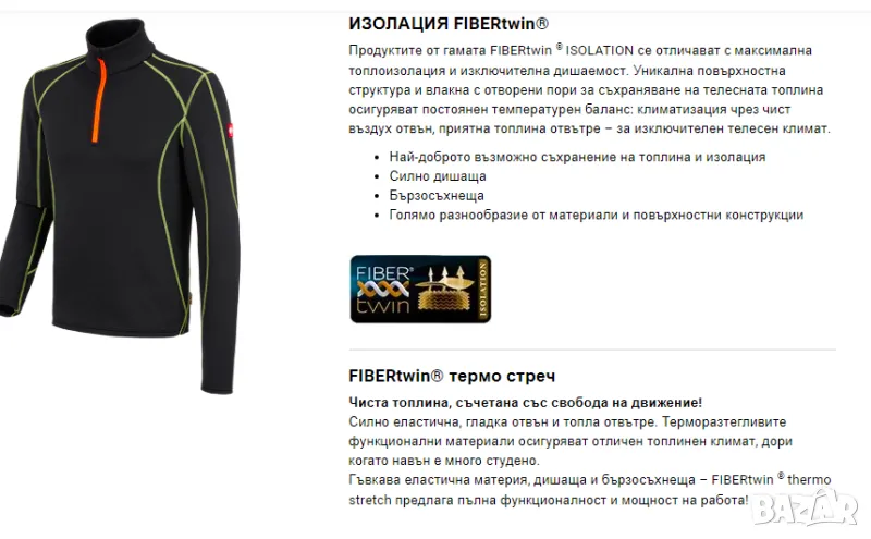 Гъвкава еластична материя, дишаща и бързосъхнеща – FIBERtwin ® thermo stretch предлага пълна функционалност и мощност на работа