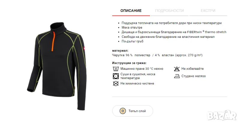 Силно еластична, гладка отвън и топла отвътре. Терморазтегливите функционални материали осигуряват отличен топлинен климат, дори когато навън е много студено.