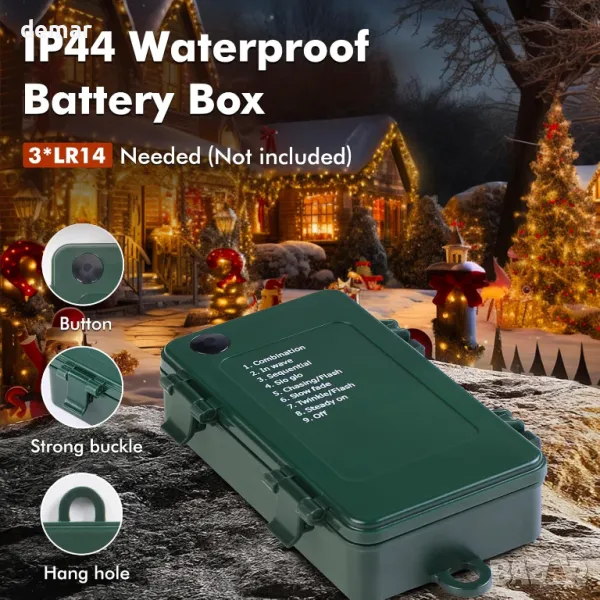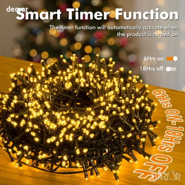 Осветете празничния си сезон с топли бели светлини за коледно дърво Quntis, включващи 1000 красиви светодиода на 25-метрова нишка, която създава топла, привлекателна светлина за вашето коледно дърво и външни пространства. Захранвани с батерии с три батерии с висока мощност (не са включени), тези светлини предлагат функция за интелигентен таймер, която ги включва за 6 часа и изключва за 18 часа, осигурявайки безпроблемна работа. С осем мигащи режима – вариращи от нежно мигане до живи танцуващи светлини – можете лесно да превключвате според вашето настроение или повод. Проектирани с водоустойчив рейтинг IP44, тези светлини са идеални както за вътрешна, така и за външна употреба, като гарантират, че вашите декорации блестят ярко независимо от времето. Универсални за всяко събитие, включително партита, сватби и рекламни изложби, те се доставят спретнато опаковани за лесно инсталиране и съхранение. Насладете се на светъл празничен сезон с тези зашеметяващи светлини, които правят всяка Коледа незабравима.
