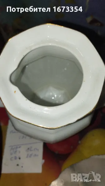 1)Кана ( чайник)с червените цветяс лек дефект снимки номер 5 и 6 обелена боя според мен не му пречи и не се вижда но си го пускам така а то може и да се оправи ,с размер вис.17 см без капак и 21 см с капак Цена 15,00 лв