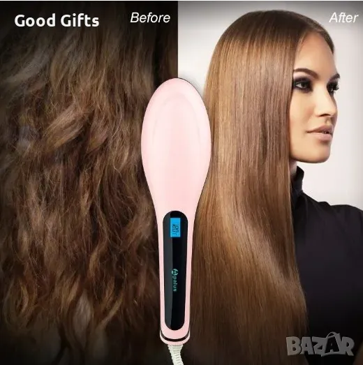 - Разполага с LCD дисплей с дигитална възможност за настройване на желаната температура на работа. Максимална температура, която достига четката е 230℃ .Работната част отвън е термо обезопасена и не създава неприятно чувство на топлина.