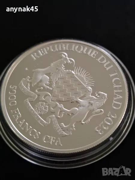 Сребърна монета от 2023г. Република Чад . Богинята Европа