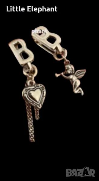 Сребърни висящи обеци,бранд,"Heart and angel"/нови → Обява 47514255