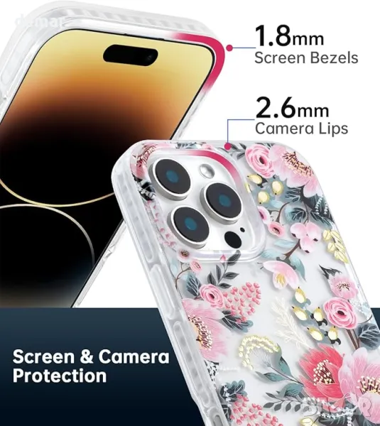 Този калъф е специално проектиран за iPhone 16 Pro Max (6,9 инча) и се отличава с уникален модел с елегантни златни акценти, съчетаващ стил с функционалност. Усъвършенстваната многослойна технология RippleTech осигурява шикозен външен вид, като същевременно осигурява ефективна защита от надраскване. Изработен от материал, устойчив на пожълтяване клас 4,5, той поддържа кристално чиста прозрачност за по-голяма яснота. Със защита от падане от 10 фута, благодарение на своите 2,6 мм повдигнати ръбове и удароустойчив материал RippleTech, този калъф отговаря на военния стандарт на САЩ (MIL-STD-810G) за издръжливост. В допълнение, неплъзгащата се текстура подобрява сцеплението, намалявайки вероятността от случайно подхлъзване.