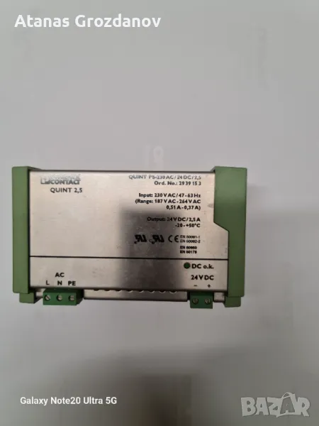 Продавам индустриален захранващ блок, първичен импулсен режим, вход 230 V AC, изход 24 V DC/2,5 A на фирмата PHCENIX CONTACT