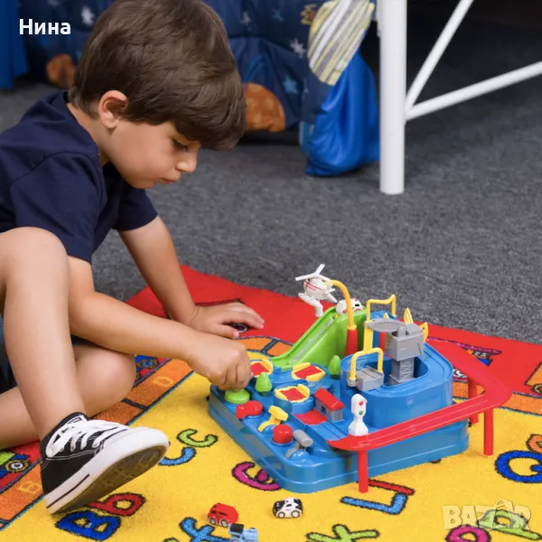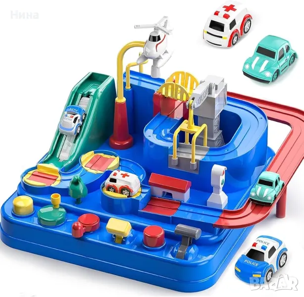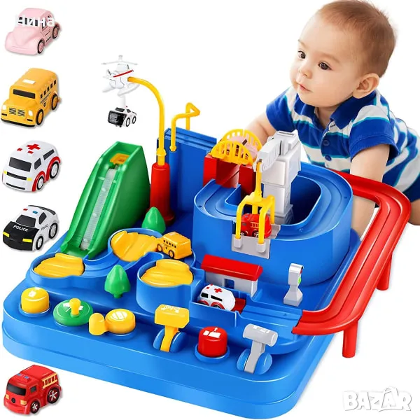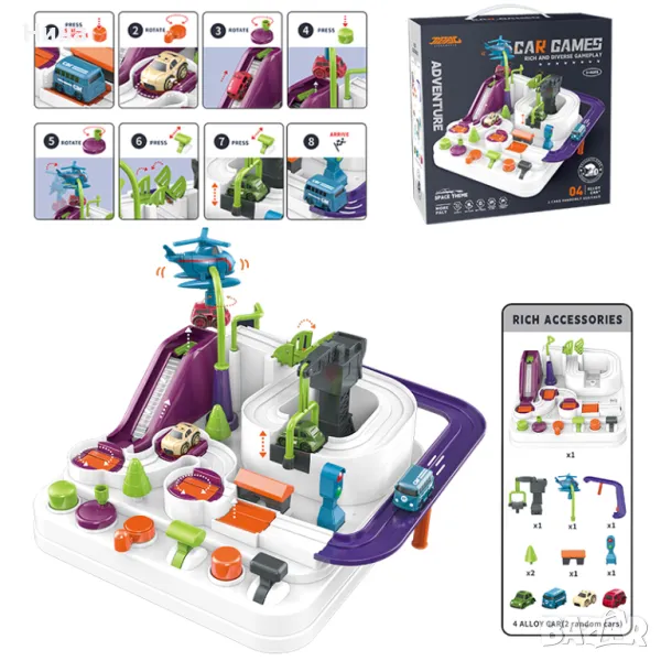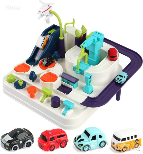 Забавна интерактивна играчка с писта и 4 коли. Съдържа: