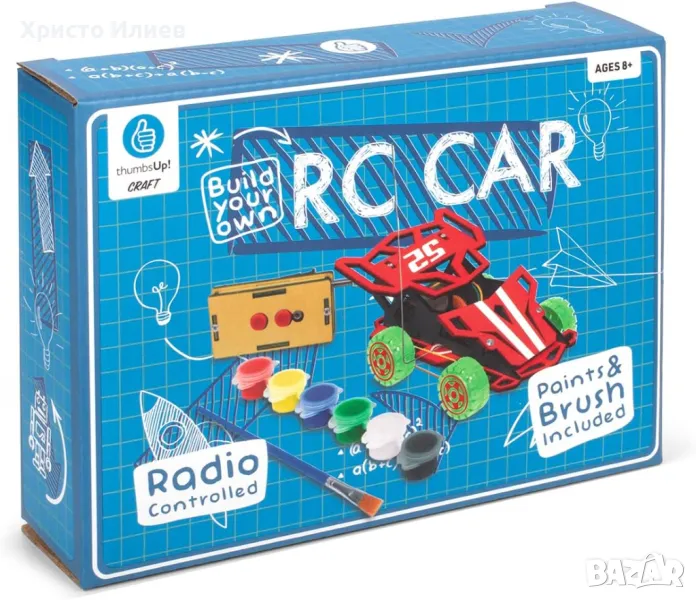 Кола за сглобяване с дистанционно е покана към всеки младеж да се изяви като механик и дизайнер. Страхотната тематична готова за подаряване кутия, крие всичко необходимо, за да може детето да се радва на кола с дистанционно с уникален персонализиран дизайн. Младият господин ще трябва сам или с ваша помощ да сглоби колата, да се погрижи за правилното разположение на захранването, както и да оцвети в избрани краски сглобената собственоръчно бегачка.
