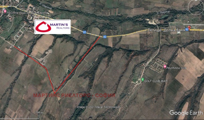 Имотът се намира на около 1км след отбивката от пътя Долна баня - Костенец и непосредствена близост до голф игрището. В близост има имоти със сменено предназначение за строителство, както и недовършени къщи от стария проект