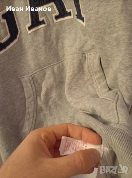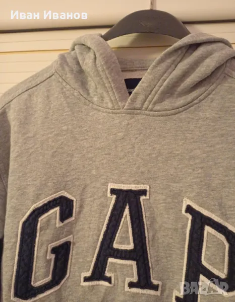 Оригинално горнище с качулка GAP в перфектно състояние, не е обличано, всички етикети и серийни номера са налични. Размер С.