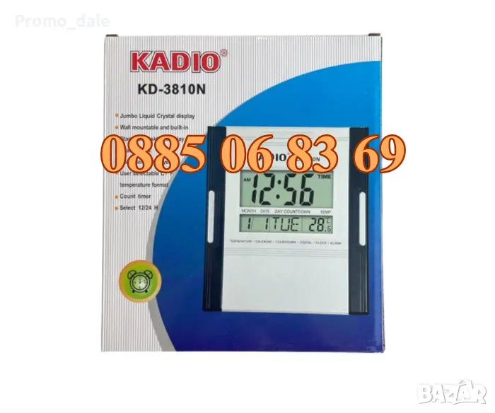 Голям настолно-стенен мултифункционален електронен часовник KADIO KD-3810N с аларма, календар и много функции