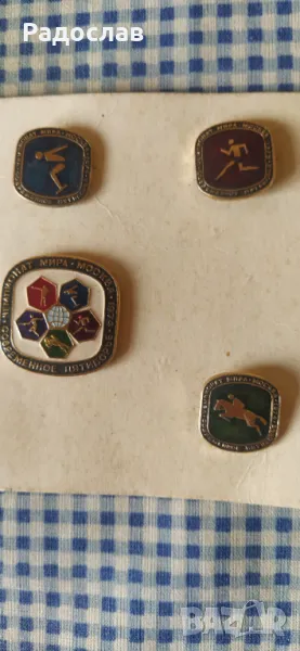 пълен комплект значки Световен шампионат по петобой Москва 1974
