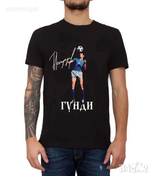 Тениски с лика и подписа на легендата на Левски и националния отбор на България Георги Аспарухов - ГУНДИ! Налични размери от XS до 5XL, както и ДЕТСКА номерация за деца от 3 до 16 години. Тениската е изработена е от 100 % памук с нова печатна технология!