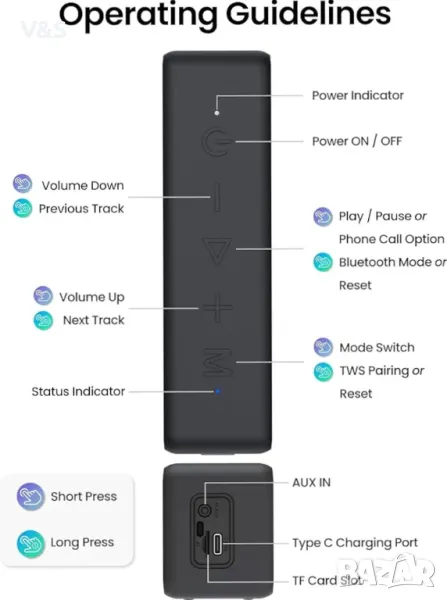 🧱Интегрирана структура: Със защита на водоустойчивите високоговорители IPX7 срещу дъжд, прах, сняг и пръски можете да се наслаждавате на музика в басейна, плажа, парка, банята и извън тях.