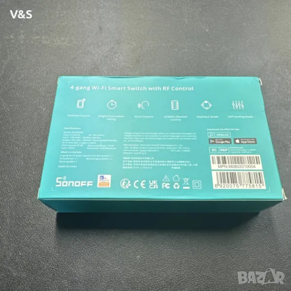 Потребителите могат да управляват дистанционно свързаните устройства чрез безплатното приложение eWeLink, налично на платформи iOS и Android или с RF 433 MHz радио дистанционно управление. Гласовата поддръжка и сътрудничеството с интелигентни асистенти също са възможни чрез съвместимост с Amazon Alexa, Amazon Echo, Echo Dot, Amazon Tap, Google Assistant, Google Home, Google Nest, IFTTT.