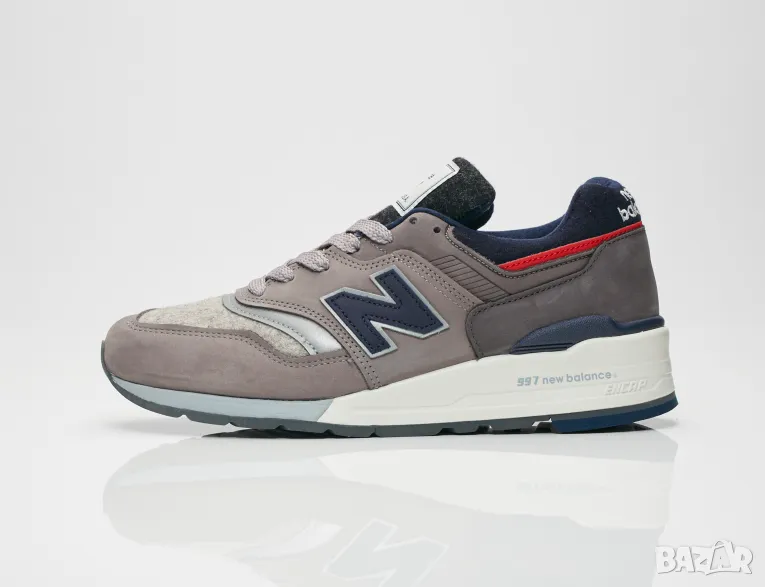 Марката от Нова Англия ни възнаграждава с нов 997, толкова вкусен, колкото и предишните, все още подпечатан с „Произведено в САЩ“ в своята фабрика Skowhegan в Мейн, гаранция за първокласно качество. Този класически силует е конструиран основно в велурено светло сиво, съчетано с тъмносини елементи като „N” на New Balance. Виждат се и докосвания от мрежа. Идентичността на Woolrich се открива в използването на вълна върху кутията на пръстите на краката и езика. Необичайният език приема ретро стил със своя шрифт. Червен кант на тока подчертава цялостния стил на чифта, който въпреки това остава особено издържан и трябва да зарадва феновете на марката. По отношение на комфорта, известната подметка с технология ENCAP допълва този идеален модел за есента и зимата.