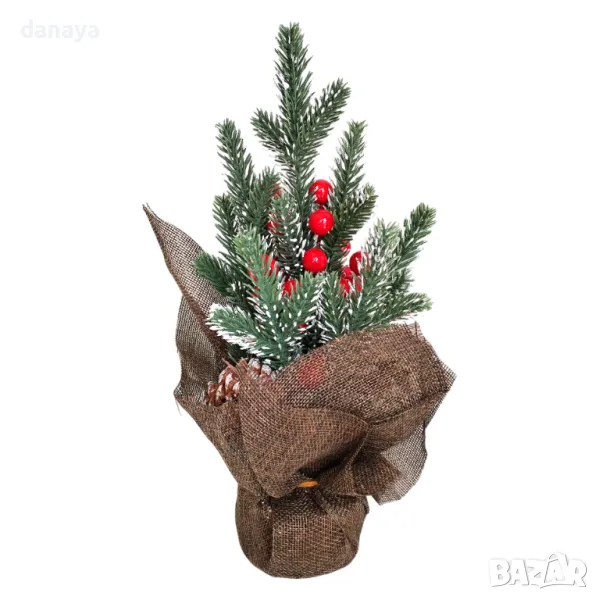 Добавете магията на Коледа във вашия дом с нашата коледна украса Елхичка с шишарки, висока 30 см. Изработена с внимание към детайла, тази очарователна елхичка е декорирана с естествени шишарки, които придават автентичен и уютен вид на вашето празнично пространство, както и червени плодове джел.