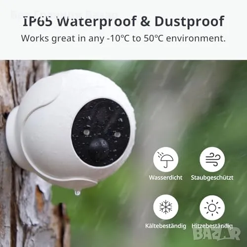 Лесен монтаж: 100% безжична, водоустойчива (IP65), подходяща за външна употреба.