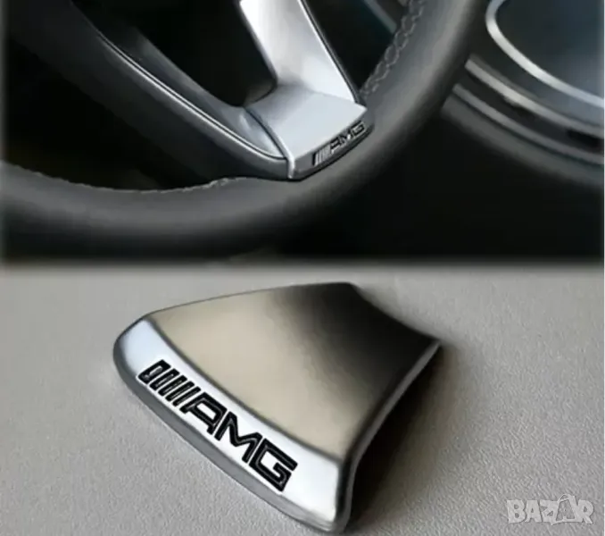 AMG лого табелката за волан е перфектното допълнение за всеки, който иска да придаде спортен и луксозен акцент на своя автомобил. С елегантен дизайн и качествено изпълнение, тази табелка лесно се инсталира чрез просто залепване, без нужда от сложни инструменти.