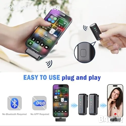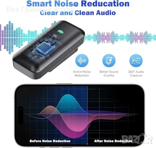 Нов Мини безжичен микрофон с AI шумопотискане, 2 приемника и калъф