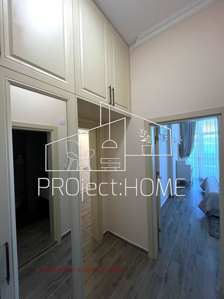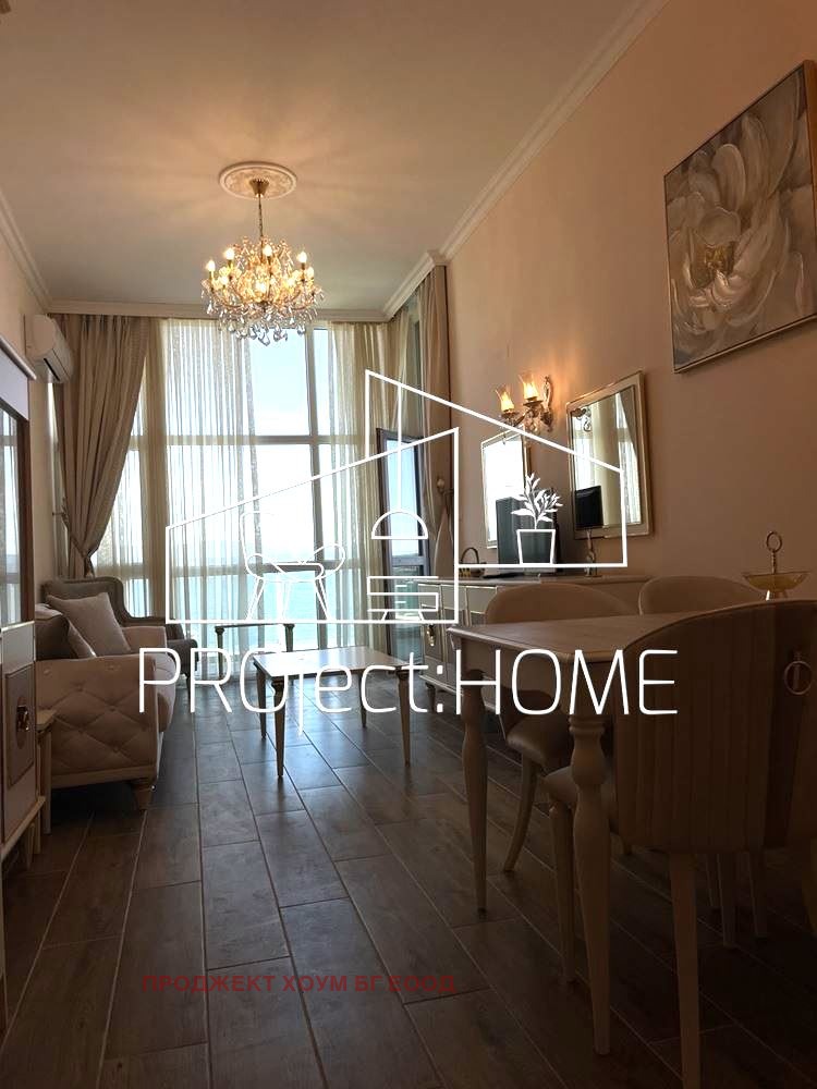 PRОject HOME/ Проджект хоум има удоволствието да Ви представи двустаен апартамент в сграда с подземен паркинг. Апартаментът е на втори етаж и се състои от антре, хол с кухненски кът, спалня, баня и тераса с гледка към морето. Издава се с наличните мебели и техника. Подходящ е както за целогодишно живеене, така и с цел инвестиция за отдаване под наем.